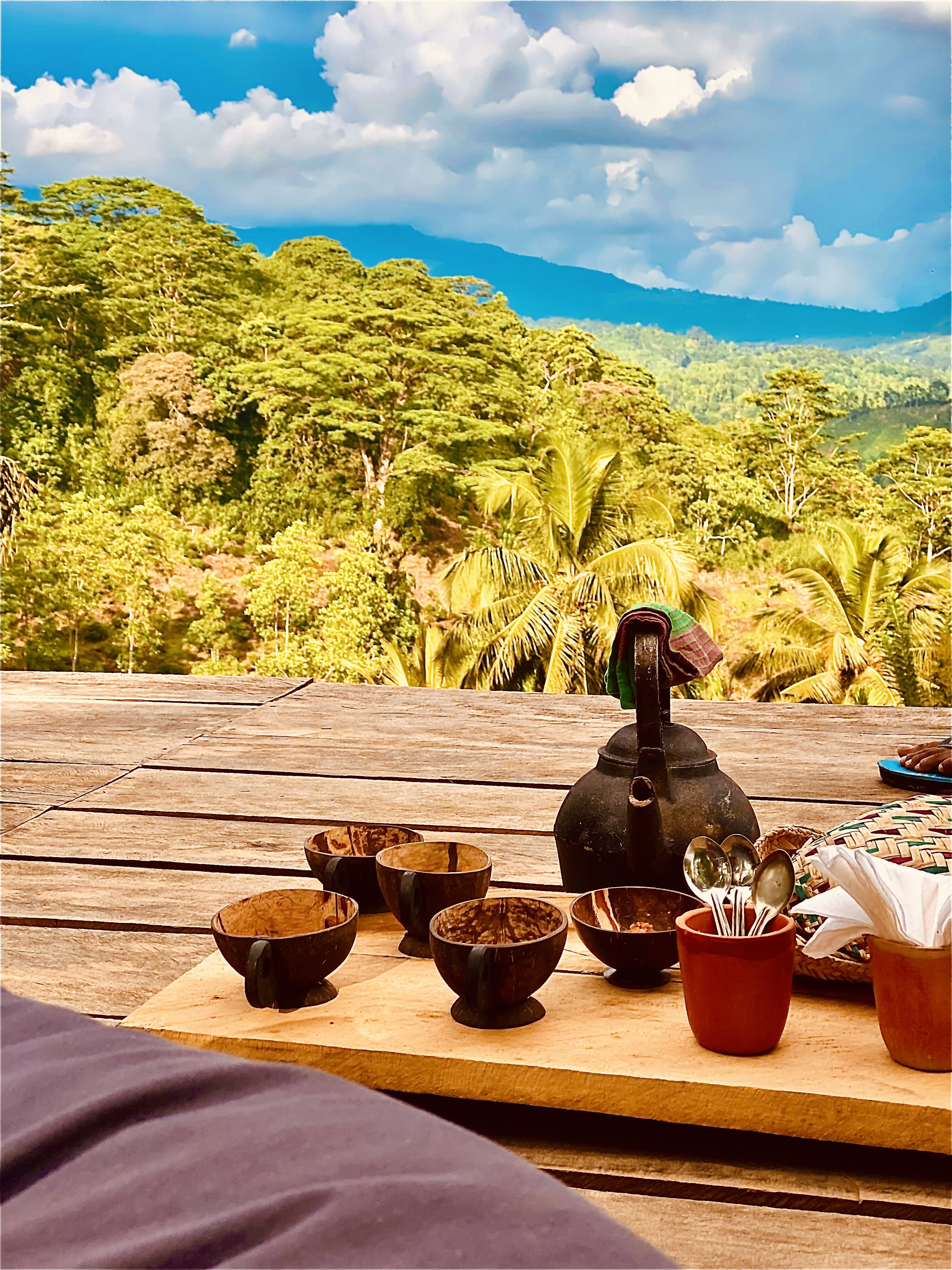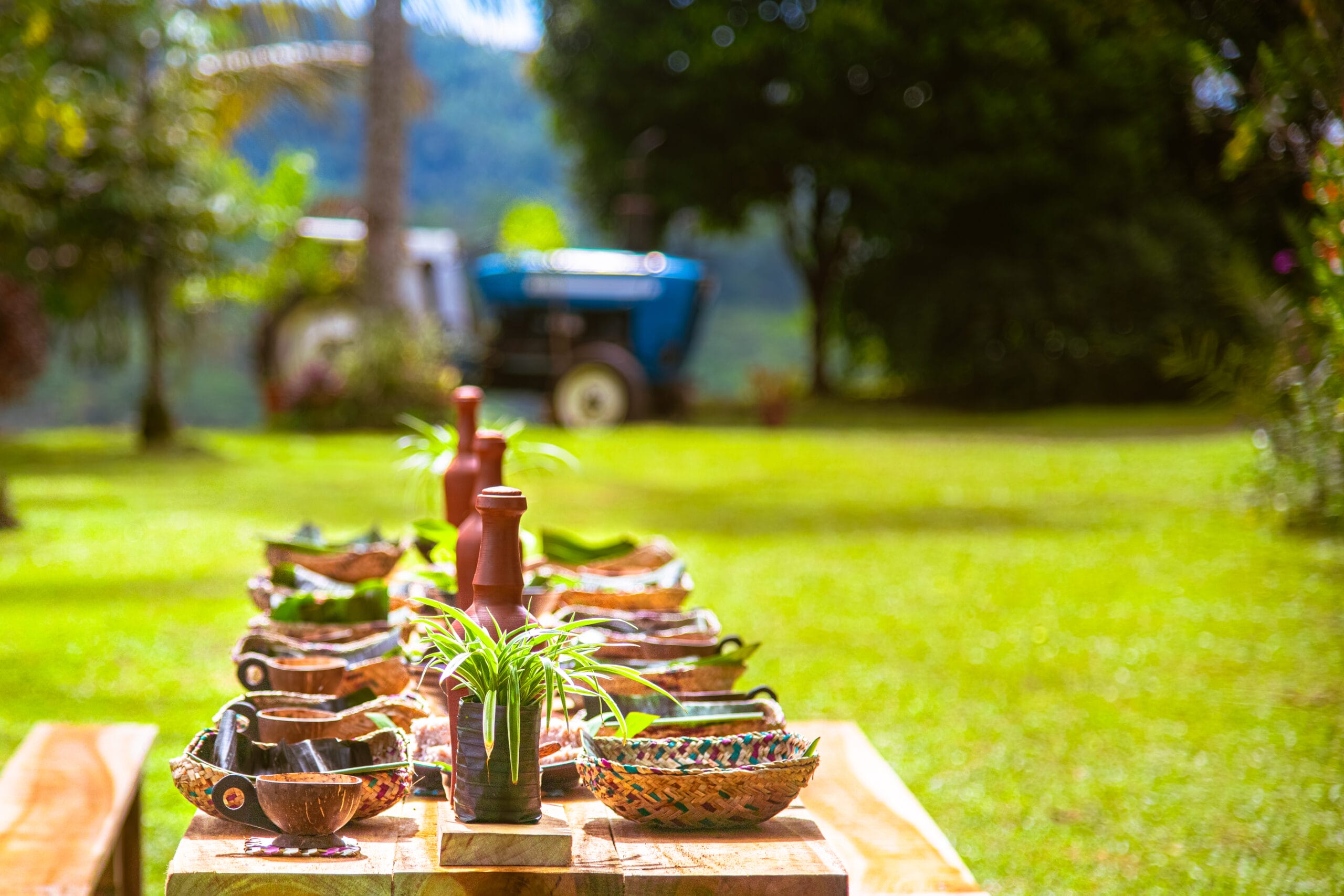 We serve authentic Sri Lankan cuisine featuring fresh local ingredients, many grown on the estate itself. Western options are also available upon request. Our chef specializes in traditional plantation-style cooking with a modern twist.
